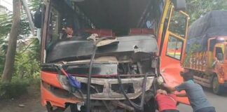 Bus Rajawali Indah Tabrakan dengan Dump Truk di Jalur Bojonegoro–Babat, Kernet...