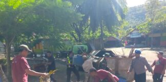 Gotong Royong Polres Trenggalek Bersihkan Area Pantai Mutiara Watulimo