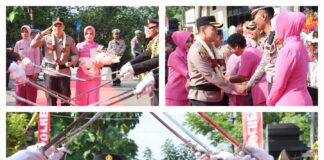 Tradisi Pedang Pora dan Banjari Sambut Kapolres Baru Nganjuk