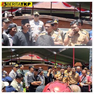 Nganjuk,BeritaTKP.com – Polres Nganjuk menerjunkan personel untuk mengamankan jalannya aksi unjuk rasa dari Aliansi RT dan RW se-Kabupaten Nganjuk yang menuntut kenaikan insentif sebesar Rp500.000 per bulan. Aksi digelar di dua titik yaitu di halaman DPRD Kabupaten Nganjuk dan Depan Kantor Pemkab Nganjuk dengan pengamanan dari Polres Nganjuk dibantu oleh TNI dan Satpol PP dengan mengedepankan cara bertindak humanis dan persuasif, Senin (29/9/2025).