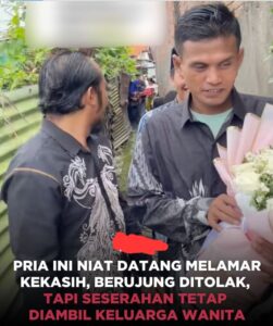Sidoarjo,BeritaTKP.com ‐‐ Kisah pilu datang dari seorang pria asal Sidoarjo, Jawa Timur, yang harus menelan kenyataan pahit setelah niat tulusnya untuk melamar sang kekasih berakhir dengan penolakan. Dalam unggahan akun TikTok @yohanardinata, terlihat pria bernama Wahyu datang membawa rangkaian bunga dan rombongan keluarga untuk menyampaikan niat baiknya.