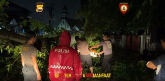 Tim SAR Ditsamapta Polda Bengkulu Melaksanakan Pembersihan Pohon Tumbang di Kota...