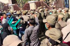 Kericuhan tak terhindarkan saat warga berusaha mengadang petugas agar pembongkaran dihentikan. Sejumlah warga bahkan membawa kursi plastik dan benda seadanya untuk menutup akses menuju lokasi eksekusi. Situasi memanas ketika petugas tetap merangsek masuk, hingga berujung bentrokan fisik.