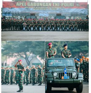 Kegiatan apel gabungan tersebut merupakan bentuk sinergitas antara TNI dan Polri dengan tema “Sinergitas, Soliditas TNI-Polri dalam rangka mendukung asta cita menuju indonesia emas”. Dalam apel gabungan tersebut di ikuti sekitar 1000 personel yang terdiri dari pasukan TNI dari matra darat, laut, maupun udara, serta dari Polri di wilayah Kogartap III Surabaya. Bertindak sebagai pemimpin apel dalam kegiatan tersebut adalah Panglima Koarmada II Laksamana Muda TNI I Gung Putu Alit Jaya, S.H.,M.Si.