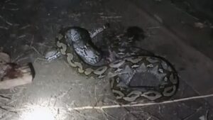 Muna, BeritaTKP.com – Warga Desa Wakobalu Agung, Kecamatan Kabangka, Kabupaten Muna, Sulawesi Tenggara, dibuat geger dengan kemunculan seekor ular piton sepanjang sekitar 4 meter yang tertangkap basah melilit dua ekor anak kambing di dalam kandang. Ular tersebut akhirnya tewas setelah ditebas warga.