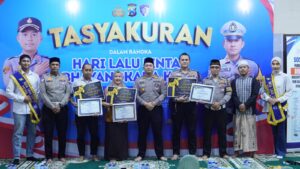 GRESIK,BeritaTKP.com – Satuan Lalu Lintas (Satlantas) Polres Gresik menggelar tasyakuran Hari Lalu Lintas Bhayangkara ke-70 pada Sabtu, 20 September 2025, bertempat di Kantor Satpas Satlantas Polres Gresik. Acara ini menjadi momentum penuh makna, tidak hanya diisi doa bersama, tetapi juga ditandai dengan pemberian penghargaan (reward) kepada anggota berprestasi serta santunan bagi anak yatim.