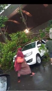 Karena hal ini, lanjut Tohir, sejumlah mobil yang terparkir juga sempat tertimpa pohon. Beruntung tak ada korban jiwa dalam insiden tersebut.