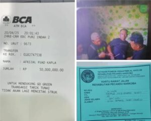 Sementara itu, keluarga korban MM mengatakan bahwa, pada saat membayar dengan sejumlah uang sebesar 100 juta untuk pembebasan yang di terimah oleh pengacara AFRIZAL FUAD KAPLA dengan sistem 2x pembayaran 50 juta kontan dan 50 juta transfer melalui rekening BCA a.n AFRIZAL FUAD KAPLA.