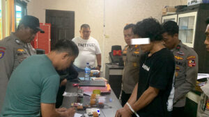 Dari lokasi penangkapan, tim KP Beo-5013 turut menyita berbagai barang bukti, di antaranya: 3 paket sabu dengan berat bruto 1,22 gram; 1 timbangan digital; 4 buah bong (alat isap sabu); 106 plastik klip kosong; pipet kaca, korek gas, sendok plastik, serta uang tunai Rp 105.000.