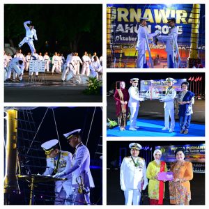 Di tengah acara Kasal didampingi Ketua Umum Jalasenastri Ny. Fera Muhammad Ali menyerahkan piagam penghargaan dan cinderamata kepada perwakilan wisudawan dalam hal ini adalah Laksdya TNI (Purn.) Prof. Amarulla Octavian beserta Ny. Anna Amarulla Octavian.