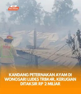 Malang,BeritaTKP.com – Kebakaran melanda kandang peternakan ayam di Dusun Sumbersari, Desa Wonosari, Kecamatan Wonosari, Kabupaten Malang, Selasa (12/8/2025).