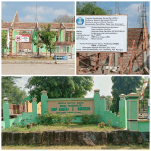 Nganjuk, BeritaTKP – Pembangunan gedung di SMPN 2 Gondang, Kecamatan Gondang, Kabupaten Nganjuk, yang ditemukan oleh awak media ini pada Rabu, 20 Agustus 2025 pukul 09’38 Wib.dinilai sangat diragukan, karena gedung kelas yang direhab terdiri 3 lokal tanpa ada papan nama /banner, namun disampingnya ada bangunan sesuai yang tercantum dalam banner yaitu Pembangunan Toilet beserta sanitasinya dengan anggaran sebanyak Rp. 111.582.976.( Seratus sebelas juta Lima ratus delapan puluh dua ribu Sembilan ratus tujuh puluh enam rupiah ) dari APBN Tahun Anggaran 2025 .