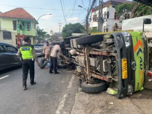Truk melaju dari arah Bawen menuju Semarang. Sesampainya di lokasi kejadian, pengemudi diduga kehilangan konsentrasi dan tidak dapat menghindari trotoar, sehingga kendaraan oleng dan terguling. terang AKP Lingga Ramadhani STK. SIK. CPHR., Kasat Lantas Polres Semarang.