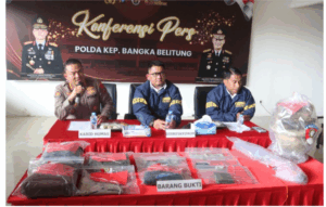 Kegiatan konferensi pers di gelar Ruang Konferensi Pers Polda Babel yang di pimpin oleh Dir Reskrimum Polda Babel, Kombes Pol M Rivai Arvan di dampingi Kabid Humas, Kombes Pol Fauzan Sukmawansyah.