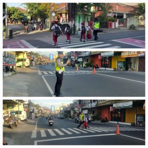 Kegiatan yang berlangsung mulai pukul 06.15 hingga 07.15 WIB ini menyasar titik-titik krusial, mulai dari persimpangan padat kendaraan hingga kawasan zona selamat sekolah.