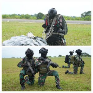 Riau,BeritaTKP.com — Pasukan Khusus TNI berhasil melaksanakan infiltrasi udara dan sabotase sasaran musuh setelah terjun dari langit Dabo Singkep menggunakan pesawat CN-235 milik Angkatan Udara Prancis, Senin (1/9/2025).