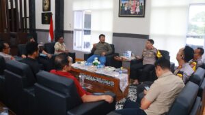Nganjuk, BeritaTKP.com – Kapolres Nganjuk AKBP Suria Miftah Irawan, S.H., S.I.K., M.I.K., didampingi Wakapolres Nganjuk serta Pejabat Utama Polres Nganjuk, menerima kunjungan Ketua Persatuan Wartawan Indonesia (PWI) Kabupaten Nganjuk Bagus Jatikusumo bersama sejumlah anggota PWI.