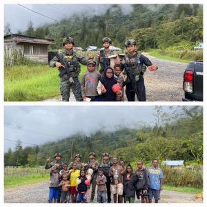 Kegiatan yang dipimpin oleh Ipda Nofri Surya Rossa tersebut berlangsung hangat dan penuh keakraban. Personel Ops Damai Cartenz tampak berbaur dengan warga setempat, terutama anak-anak yang antusias menerima kehadiran aparat di tengah mereka.