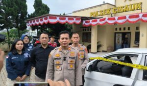Tangsel, BeritaTKP.com – Polsek Cisauk, Polres Tangerang Selatan, menggelar konferensi pers terkait insiden ledakan mobil jenis hatchback yang terjadi pada 15 Juli 2025 di Jl. Raya Serpong–Rumpin, tepatnya dekat restoran cepat saji Desa Suradita, Kecamatan Cisauk, Kabupaten Tangerang.
