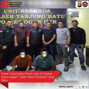 Ogan Ilir, BeritaTKP.com – Tim Rimau Batu Polsek Tanjung Batu berhasil mengungkap kasus dugaan tindak pidana peredaran uang palsu sebagaimana dimaksud dalam Pasal 36 Ayat (3) UU Nomor 7 Tahun 2011 tentang Mata Uang. Dua pelaku diamankan dalam operasi yang berlangsung pada Sabtu, 30 Agustus 2025 sekitar pukul 20.53 WIB di Desa Talang Seleman, Kecamatan Payaraman, Kabupaten Ogan Ilir.