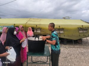 “Kami berupaya hadir setiap hari untuk memastikan kebutuhan dasar masyarakat, khususnya makanan, dapat terpenuhi. Ini adalah wujud nyata kepedulian TNI kepada rakyat,” ungkapnya.