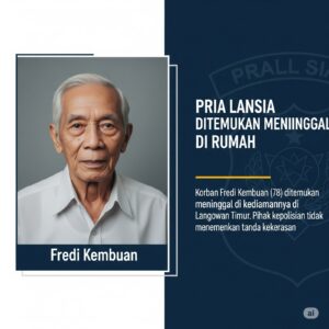 LANGOWAN TIMUR, BeritaTKP.com – Seorang pria lansia bernama Fredi Kembuan (78) ditemukan meninggal dunia di kediamannya di Desa Sumarayar Jaga V, Kecamatan Langowan Timur. Penemuan ini terjadi pada hari Kamis, 14 Agustus 2025, sekitar pukul 09.00 WITA.