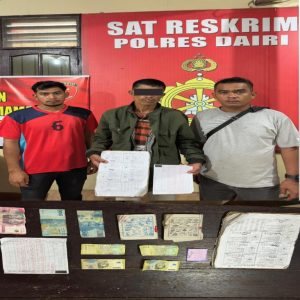SUMBUL, BeritaTKP.com // Sat Reskrim Polres Dairi meringkus seorang juru tulis judi togel yang berlokasi di Desa Tumpak Debata Kecamatan Sumbul Kabupaten Dairi, Jumat (21/2/2025).