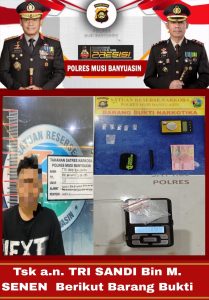 Musi Banyuasin, BeritaTKP.com– Seorang pria berinisial Tri Sandi bin M. Senen (29), warga Desa Sri Gunung, Kecamatan Sungai Lilin, Kabupaten Musi Banyuasin, harus berurusan dengan hukum setelah kedapatan menyimpan narkotika jenis sabu di kontrakannya.