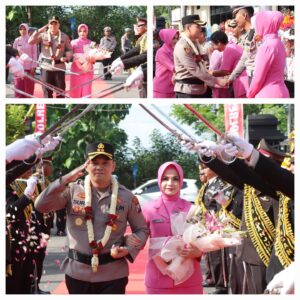 Nganjuk,BeritaTKP.com – Polres Nganjuk menyambut pertama kali kedatangan Kapolres Nganjuk yang baru saat menapakkan kaki di Mako Polres Nganjuk, AKBP Suria Miftah Irawan, S.H., S.I.K., M.I.K., melalui tradisi pedang pora yang dipadukan dengan iringan kesenian Banjari, musik Islam tradisional yang melantunkan shalawat serta pujian kepada Nabi Muhammad SAW, Senin (19/01/2026).
