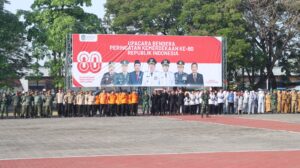 Dalam amanatnya, Bupati Nganjuk Marhaen Djumadi menegaskan bahwa tema HUT ke-80 RI “Bersatu, Berdaulat, Rakyat Sejahtera, Indonesia Maju” harus diwujudkan bersama.
